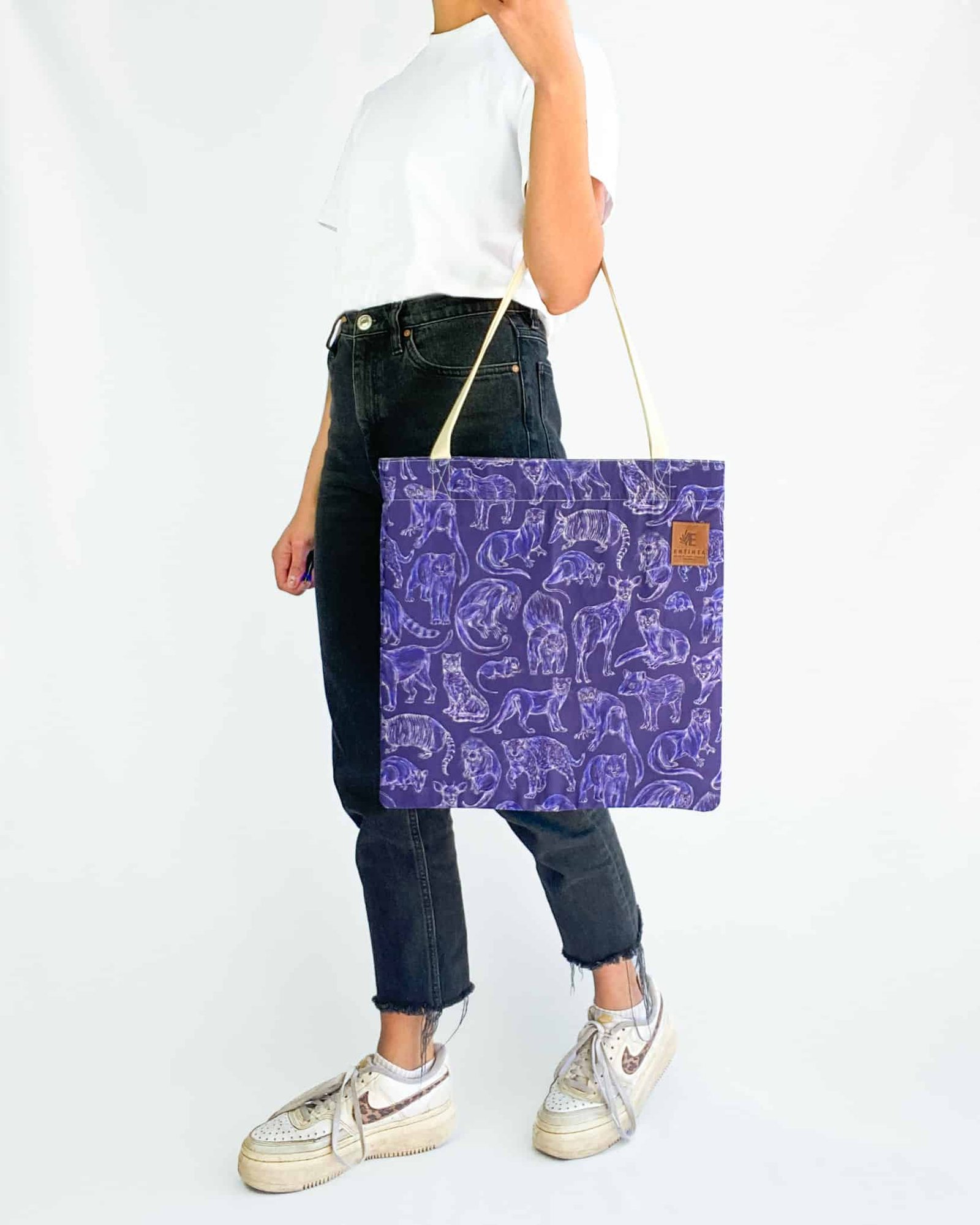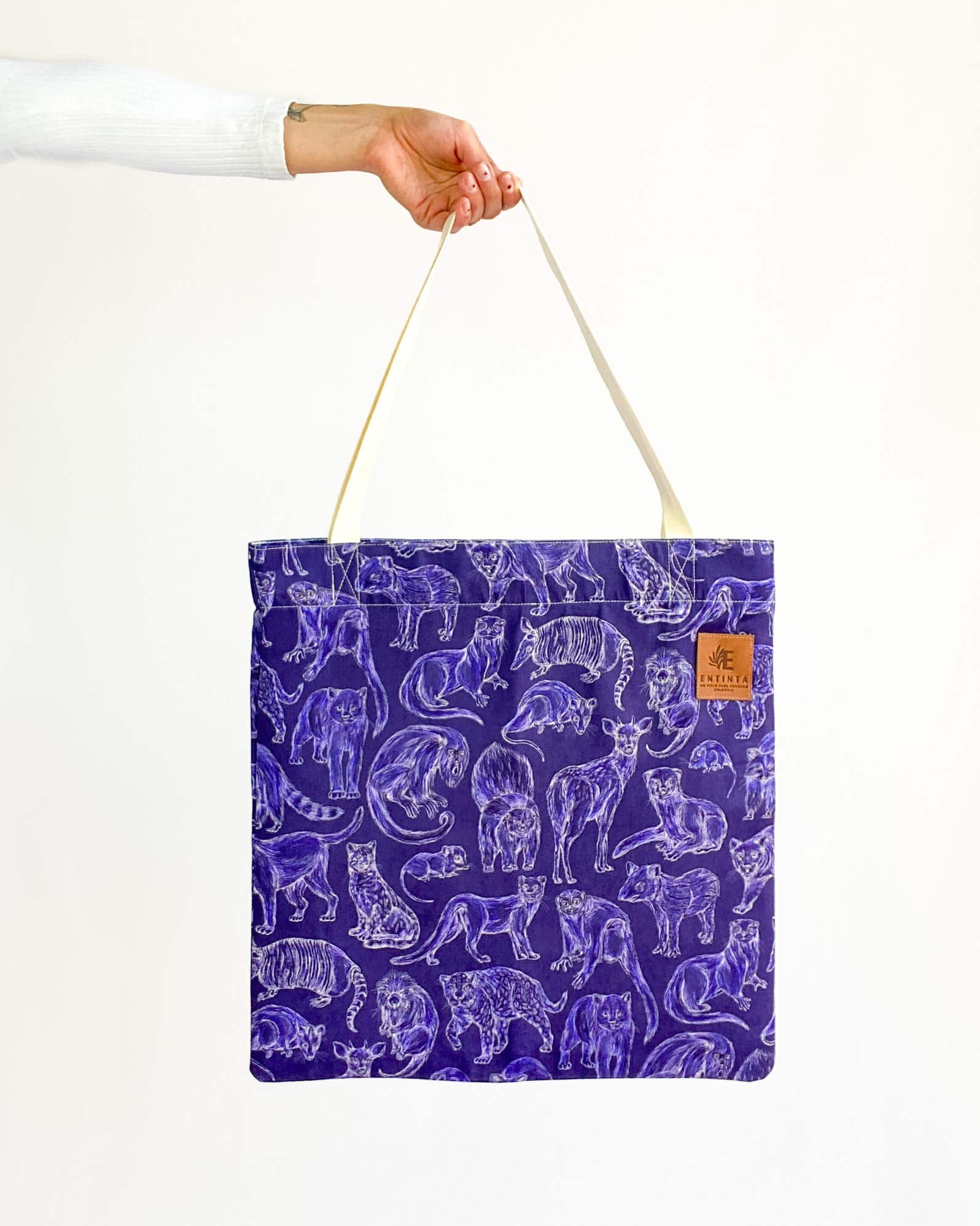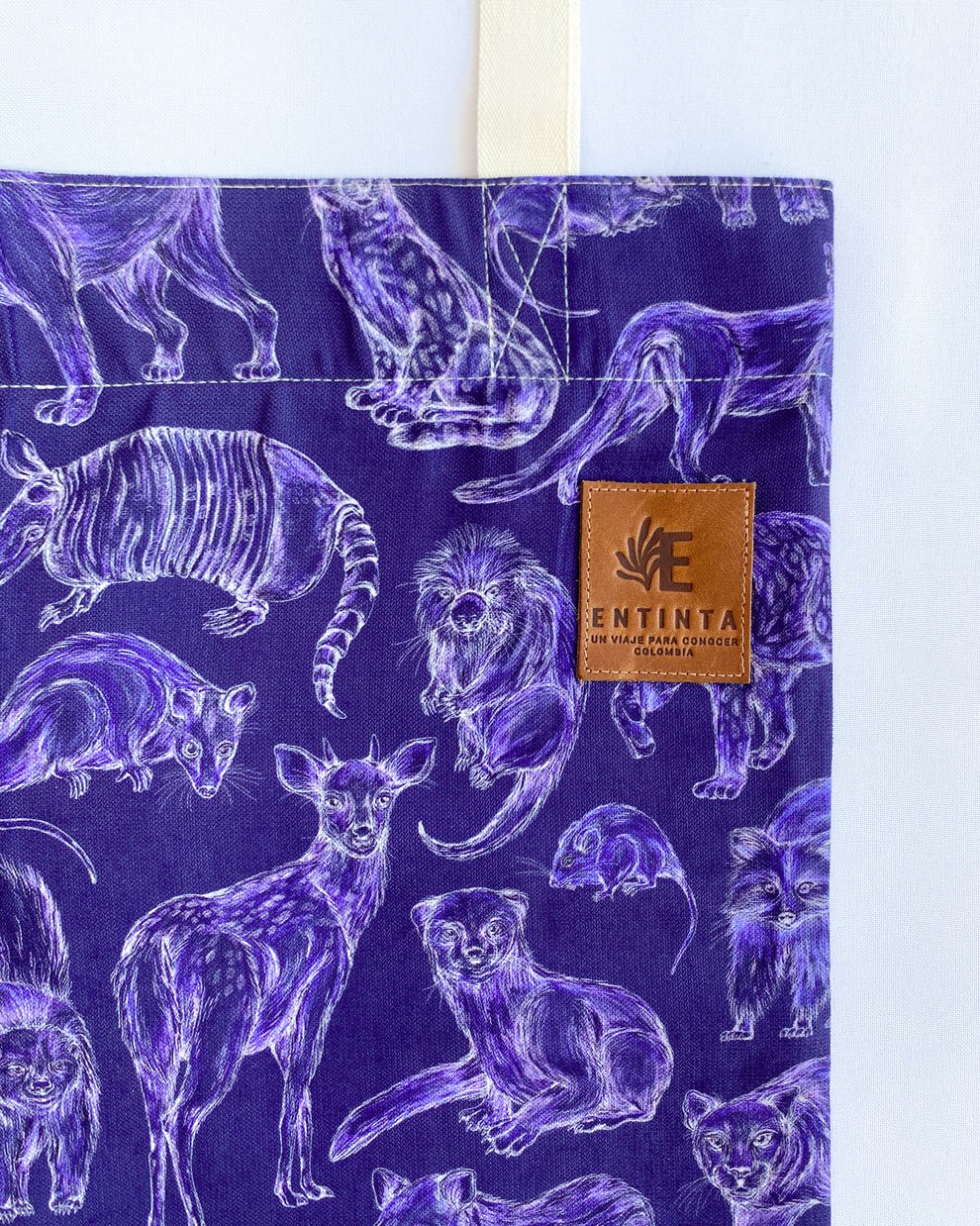 Bolsa de tela “Mamíferos de La Sierra, cuidadores de la armonía – Desde los más pequeños hasta los más grandes, los mamíferos de La Sierra son seres vivos y espirituales, autoridades y guardianes del territorio. Protegen y cuidan la conectividad de La Sierra participando en la dinámica natural de los ecosistemas.”.